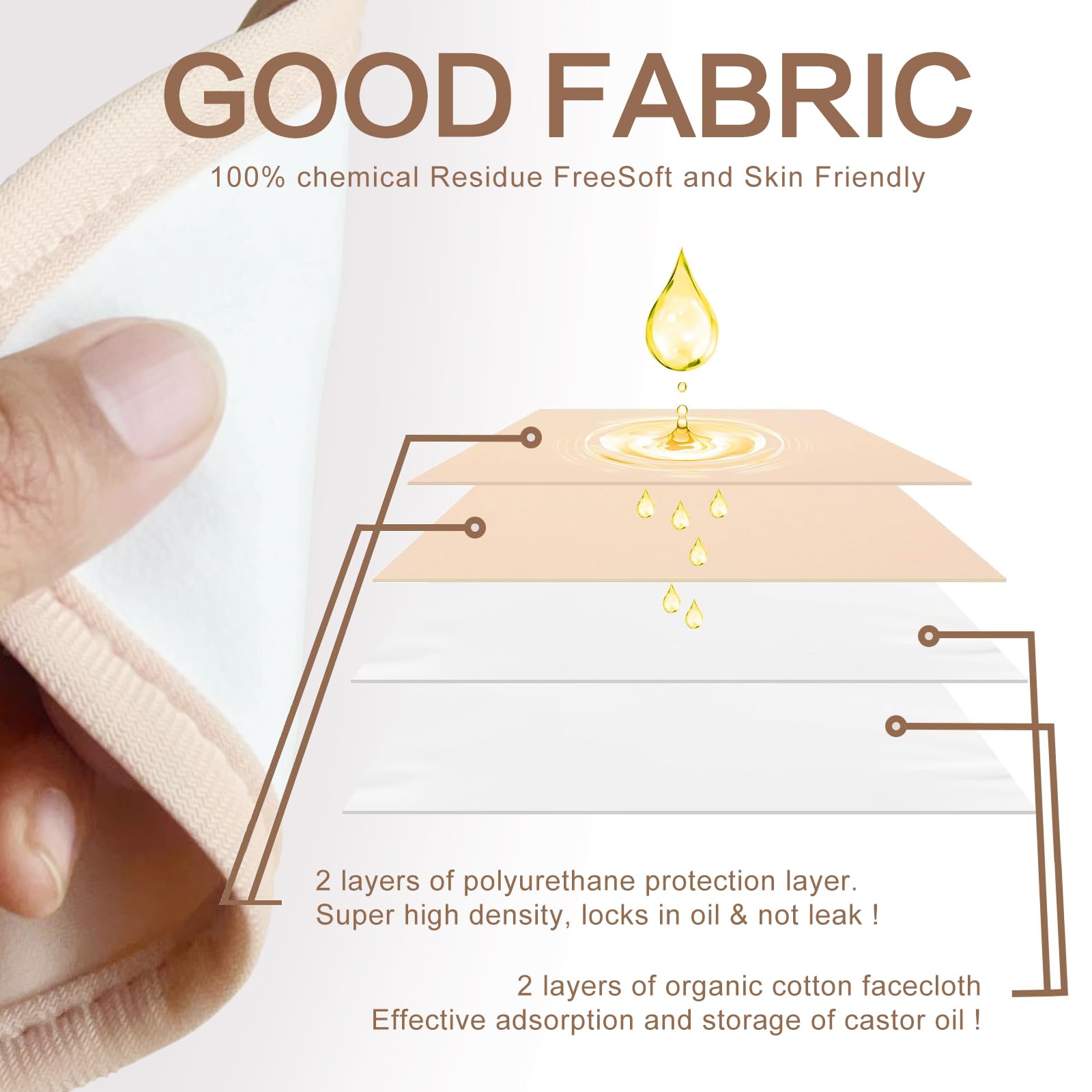 - ✅Castor Oil Pack Wrap -The caster oil pack wrap features an inner layer of soft, organic cotton flannel, a middle layer of leak-free polyurethane laminate(PUL), and an outer layer of air layer fabric provides a soft and comfortable feel, which is effective in waterproof and oil proof. The pack is machine washable and reusable. Plus, the dedicated pouch securely holds hot/cold pads.