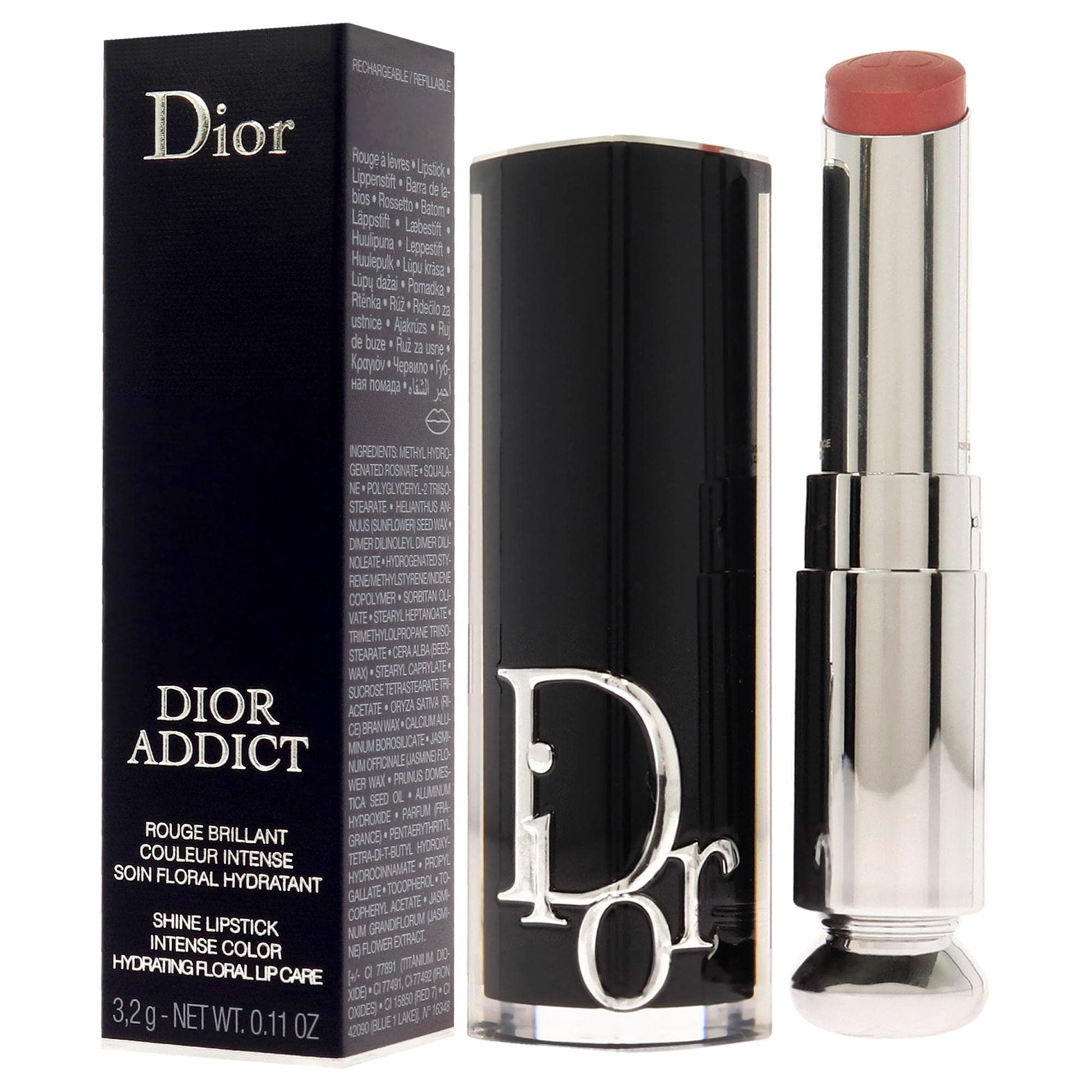- A Dior Addict lipstick for up to 24 hours of hydration and up to six hours of color and shine, in a refillable couture case