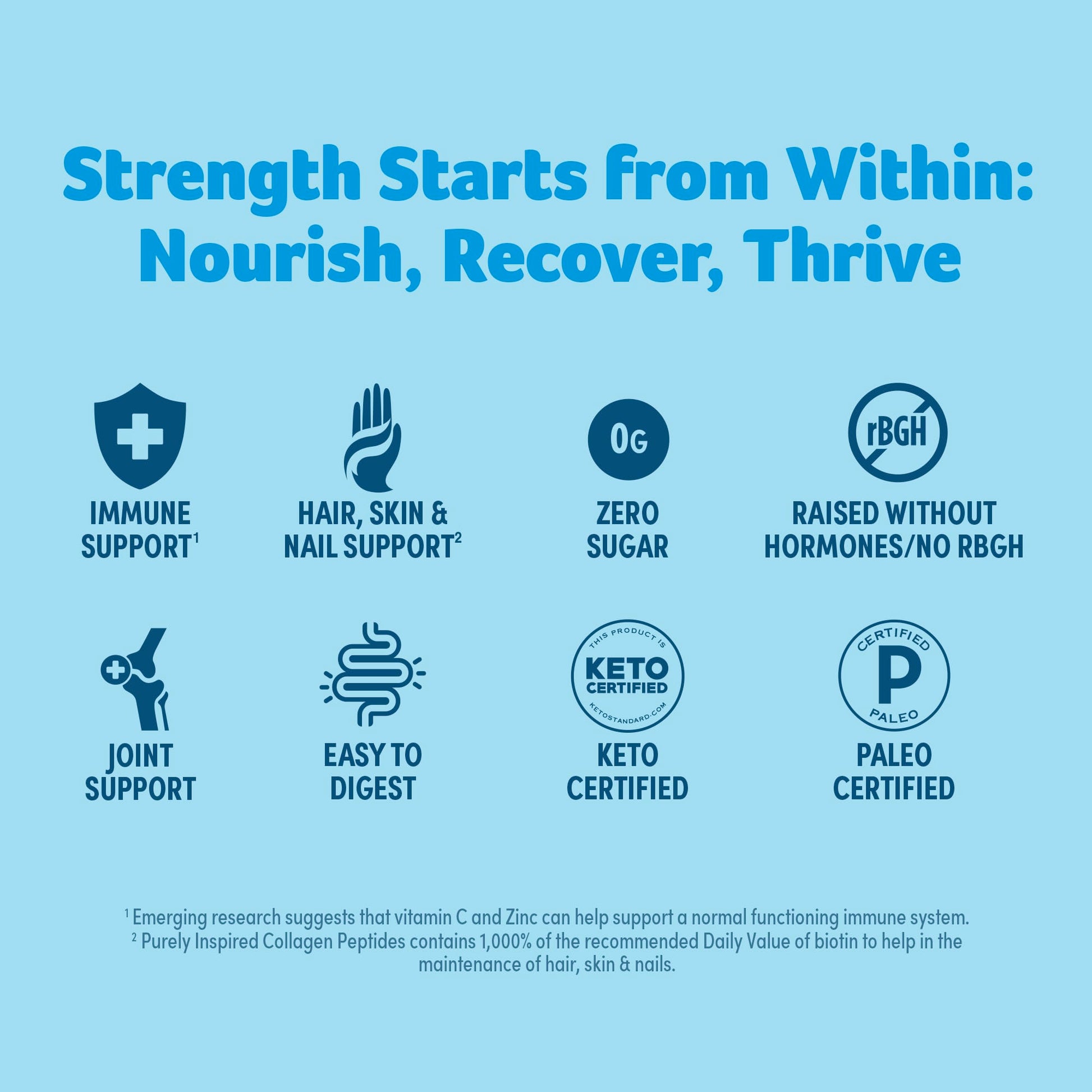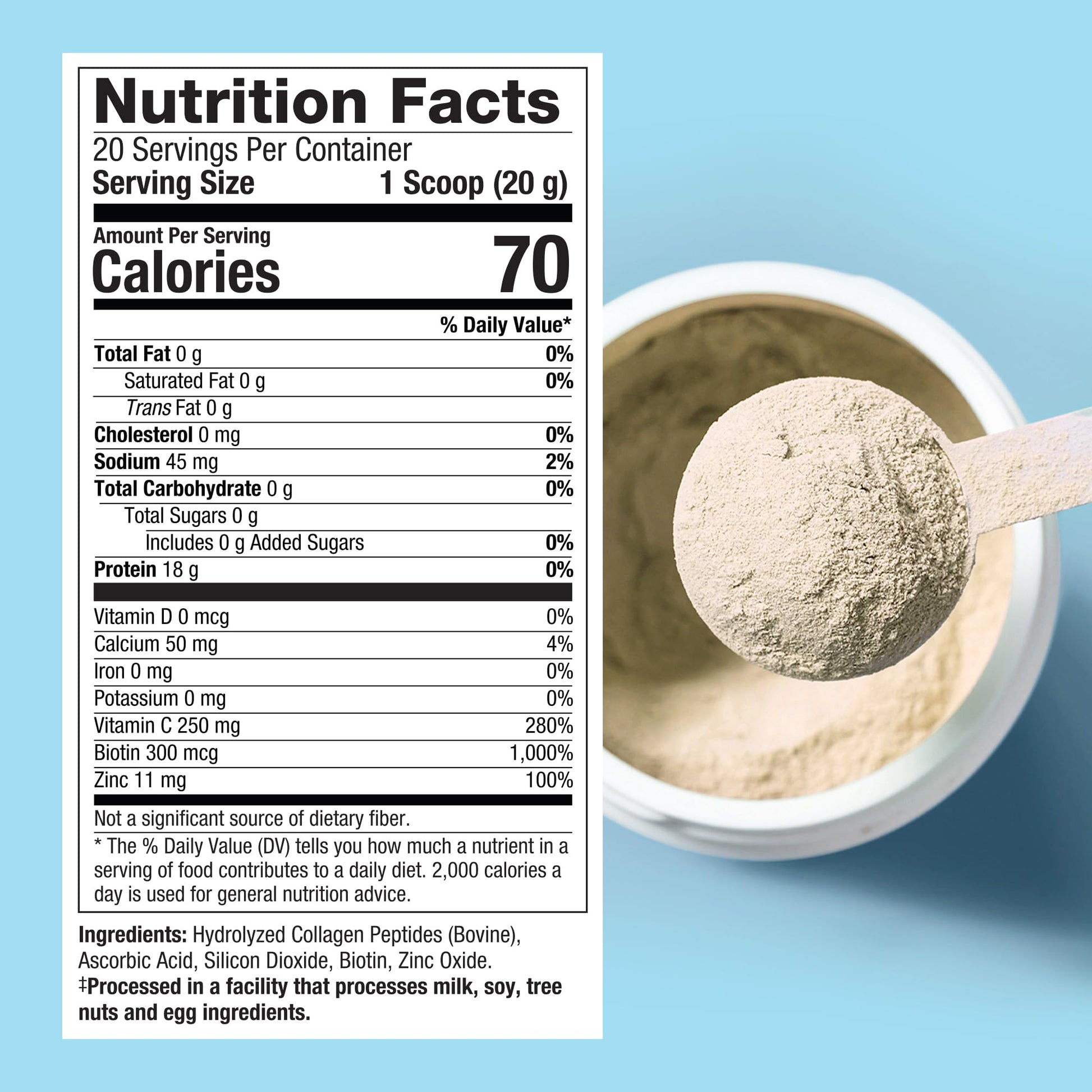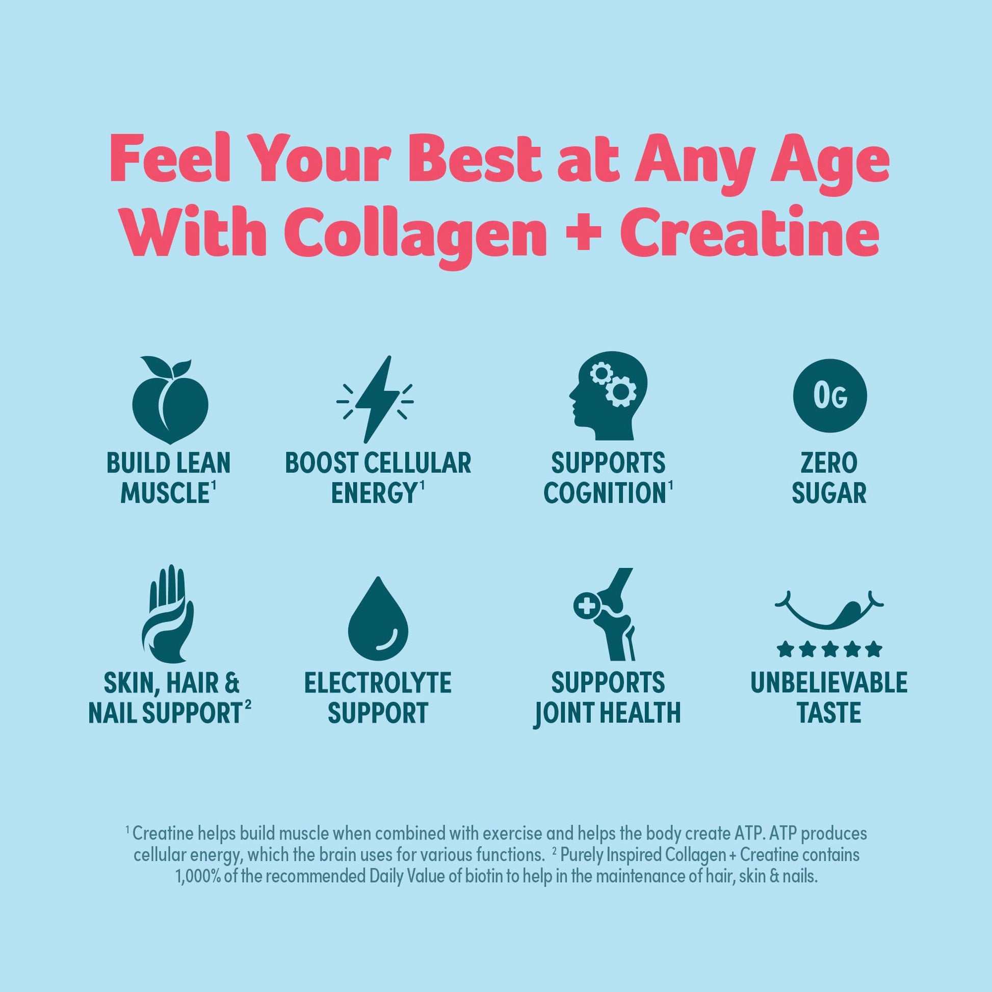 - Support Your Daily Glow: Purely Inspired Collagen Peptides delivers 20g of collagen, 18g of protein, and 0g of sugar in an easy-to-mix, unflavored formula—plus 300mcg of Biotin to support healthy hair, skin, and nails. 20 servings per container.